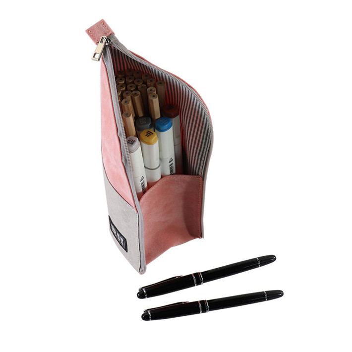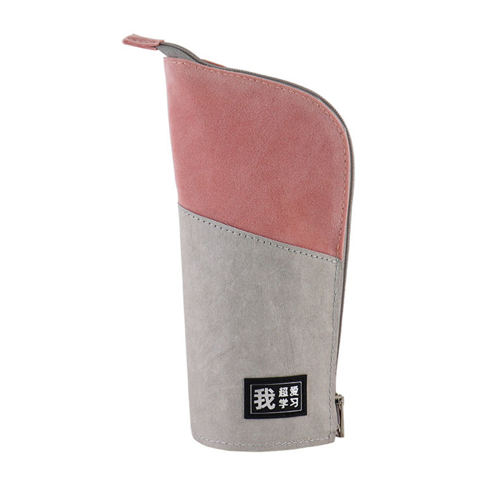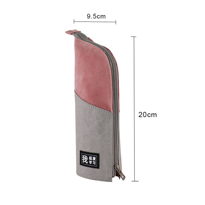 2019得力文具筆袋筆筒二用多功能牛皮紙拼接桃皮絨拼接學(xué)生袋定制