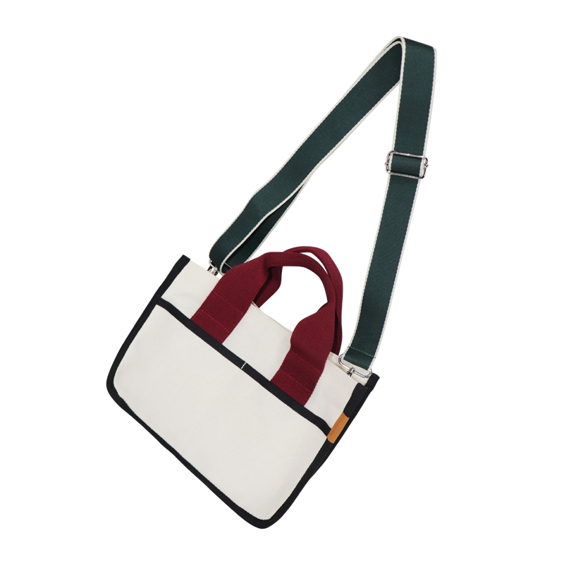 撞色寬帶帆布手提包 立體休閑單肩包