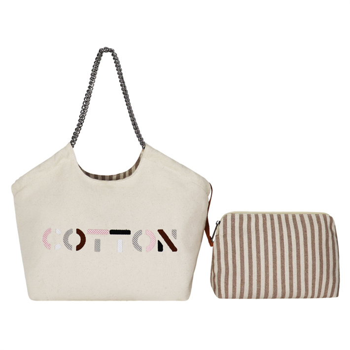 定制女包美拉德色系小香風(fēng)帆布包 刺繡條紋牛仔紋鏈條單肩手提包
