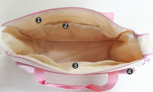 ![]() | ④:外袋拿取東西較為方便,所以可以放一些用處比較多的東西,又由于在外面,不能放過于貴重的東西。可以選取濕紙巾等。 |