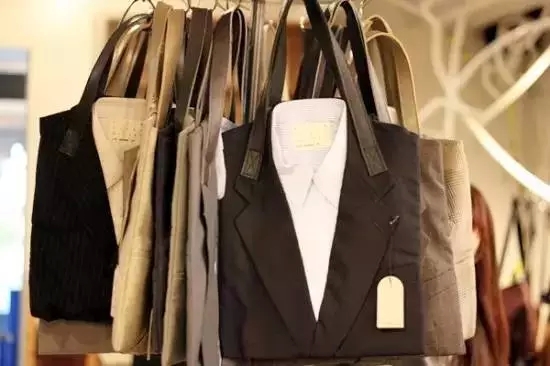 首爾“ECO PARTY MEARRY”是一家宣傳環(huán)保理念的商店,店內(nèi)商品均采用人們廢棄的衣物作為原料,加以設(shè)計(jì)改造,使之變成一件件創(chuàng)意產(chǎn)品。在這里,那些看似不起眼的舊物都得以“起死回生”:舊西服手提包(RecycledSuitTote)的所有材質(zhì)都來自不值幾錢的廢舊貨——把手是舊皮革沙發(fā)上剪下來的,包包主體則是舊西服,為了美觀,里面還搭配了一件相應(yīng)花色的舊襯衣。雖然這個創(chuàng)意聽上去很雷人,但是看到實(shí)物時,你還真的會被它吸引:西服上的口袋,可以讓你分門別類地放些零碎小物,而西服和襯衣本身的布料、花色和款式,也能為整個包包帶來不錯的質(zhì)感,而且每一款都是純手工制作。