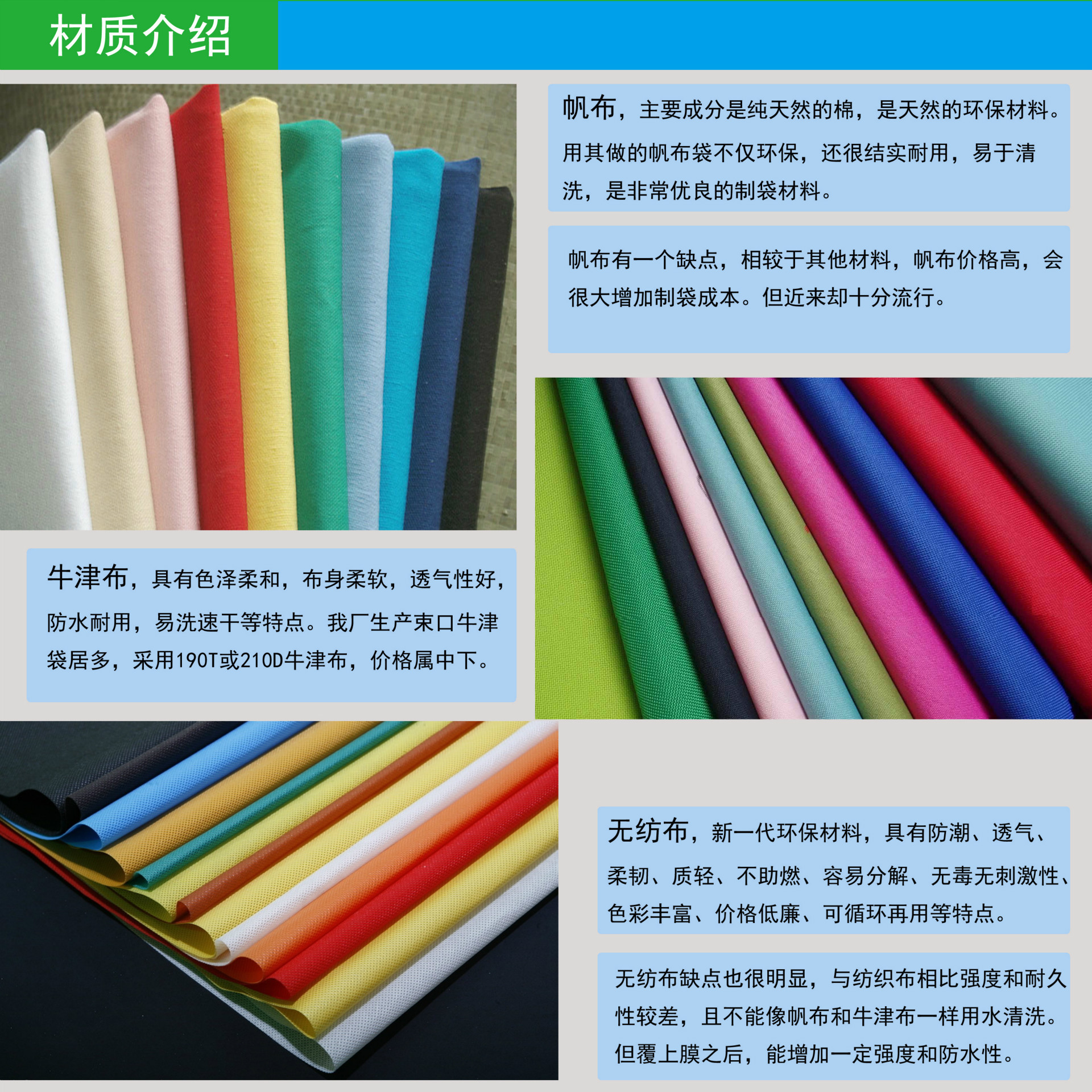 帆布、牛津布、無(wú)紡布材質(zhì)特點(diǎn)介紹、特性分析,定做袋子材質(zhì)選擇