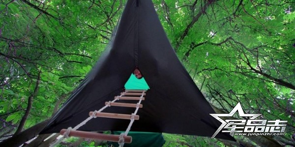 在實(shí)際使用時(shí),使用者分別將3個(gè)頂角位置的金屬棘輪扣及尼龍固定帶與樹木固定后,便完成帳篷的懸空搭建工作。此時(shí)需注意的是,雖然Stingray可懸掛在任何高度使用,但為安全起見,它與地面的懸掛高度最好不要超過1.2米。