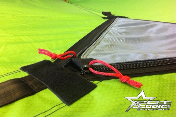 Stingray有2種進(jìn)入方式,一個(gè)是側(cè)面的橢圓形開口,另一個(gè)則是帳底中心的三角形艙口。將帳篷懸掛于空中后,使用者可通過軟梯自下而上爬入帳內(nèi)。此后,通過此部分的雙線拉鏈關(guān)閉艙口即可。