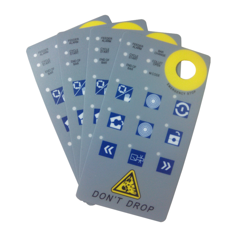 設(shè)備面板標(biāo)貼常見采用的材料有PVC、PET、PC等材質(zhì),使用全自動絲印機多色絲印,可以滿足多種色彩印刷需求,方便設(shè)備面板標(biāo)貼起到一定的警示及功能說明作用。