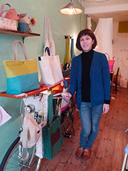 她決定獨(dú)立的時(shí)候,沒(méi)有足夠的資金開(kāi)店。那時(shí)候,她自然想到的是自行車。她離開(kāi)工廠后,自己設(shè)計(jì)自行車上的木質(zhì)機(jī)關(guān)箱子,帶著自己手工的帆布製品,向谷根千的街道騎上去了。天氣好壞影響生意,有時(shí),被路過(guò)人嘲弄??墒牵戎械钠渌麕煾狄恢惫膭?lì)她。她在谷中師傅的支持之下挨了五年,終于在谷中有了小店舖,在那里製作帆布包而銷售。她說(shuō),有谷中就能夠堅(jiān)持下去。