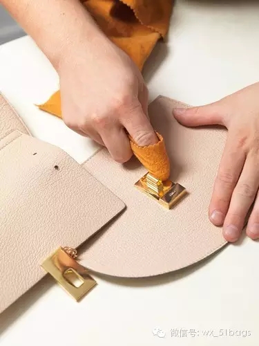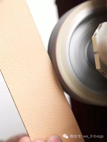 打磨油邊:將皮邊反復(fù)打磨,保證撞色油邊平整光滑。