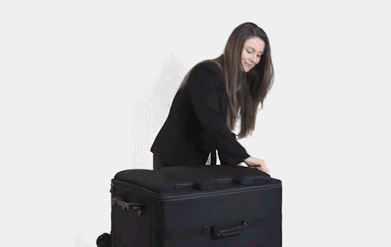 現(xiàn)在就有這么一個(gè)神奇的旅行箱,外觀和普通箱子沒(méi)差,打開拉鏈之后,如上圖所示:將箱體兩側(cè)的伸縮拉桿打開,再拎起中間的軟包疊放架,掛好,一個(gè)擺放整齊、井然有序的隨身衣柜瞬間出現(xiàn)。行李箱蓋板上的三個(gè)拉鏈口袋,瞬間也成了臨時(shí)置物袋。
