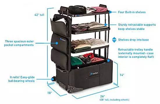 它是由一位飽受出差理衣服之苦的宅男發(fā)明的,還一舉獲得了2015TGA最好的新產(chǎn)品大獎(jiǎng)。就是這個(gè)箱子要350美元 ,小貴。